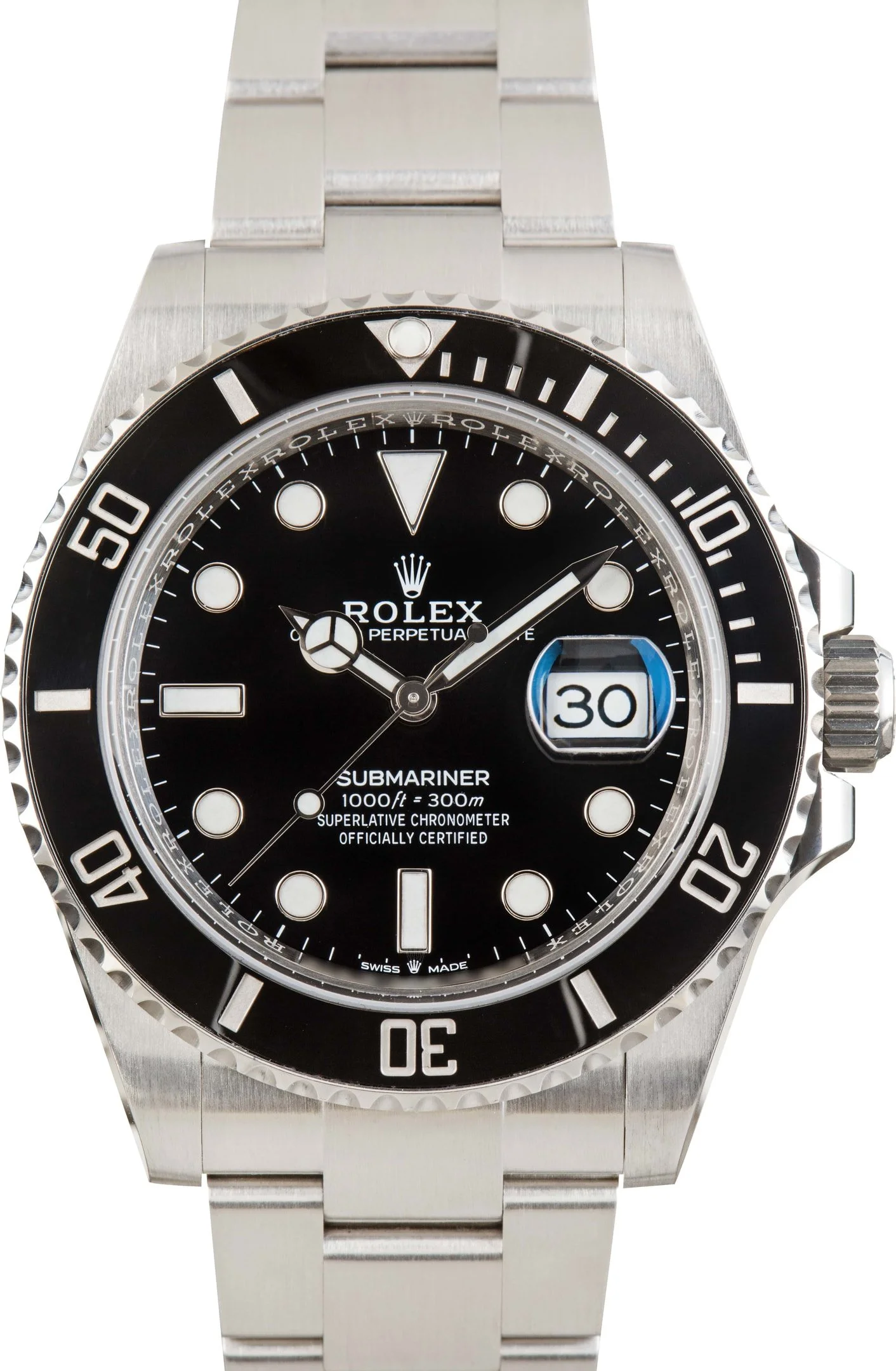 Why We Love This Watch This used Rolex Submariner ref. 126610 (2023) exemplifies modern sport-luxury with a 41mm stainless steel case paired with a black Cerachrom bezel and matching black dial. Chromalight hands and hour markers provide clear legibility in any light, while the Caliber 3235 automatic movement delivers precise timekeeping and a 70-hour power reserve. Secured on a robust Oyster bracelet, this Submariner combines iconic design, everyday durability, and professional dive capability for collectors and enthusiasts alike. WATCH DETAILS CREDIT CARD PRICE $16,355.96 BRAND Rolex MODEL NAME Submariner MODEL NUMBER 126610 YEAR 2023 ITEM NUMBER 184365 CONDITION Excellent GENDER Mens BOX & PAPERS Box and Papers CASE MATERIAL Stainless Steel CRYSTAL Sapphire SIZE 41MM BEZEL Ceramic Timing CASEBACK Solid SERIAL Q5060XXX DIAL Black w/ Luminous hour markers, Chromalight hands & Chromalight lume MOVEMENT CALIBRE 3235 TYPE Automatic BEZEL Unidirectional COMPLICATION Date BRACELET MATERIAL Stainless Steel TYPE Oyster CLASP Glidelock