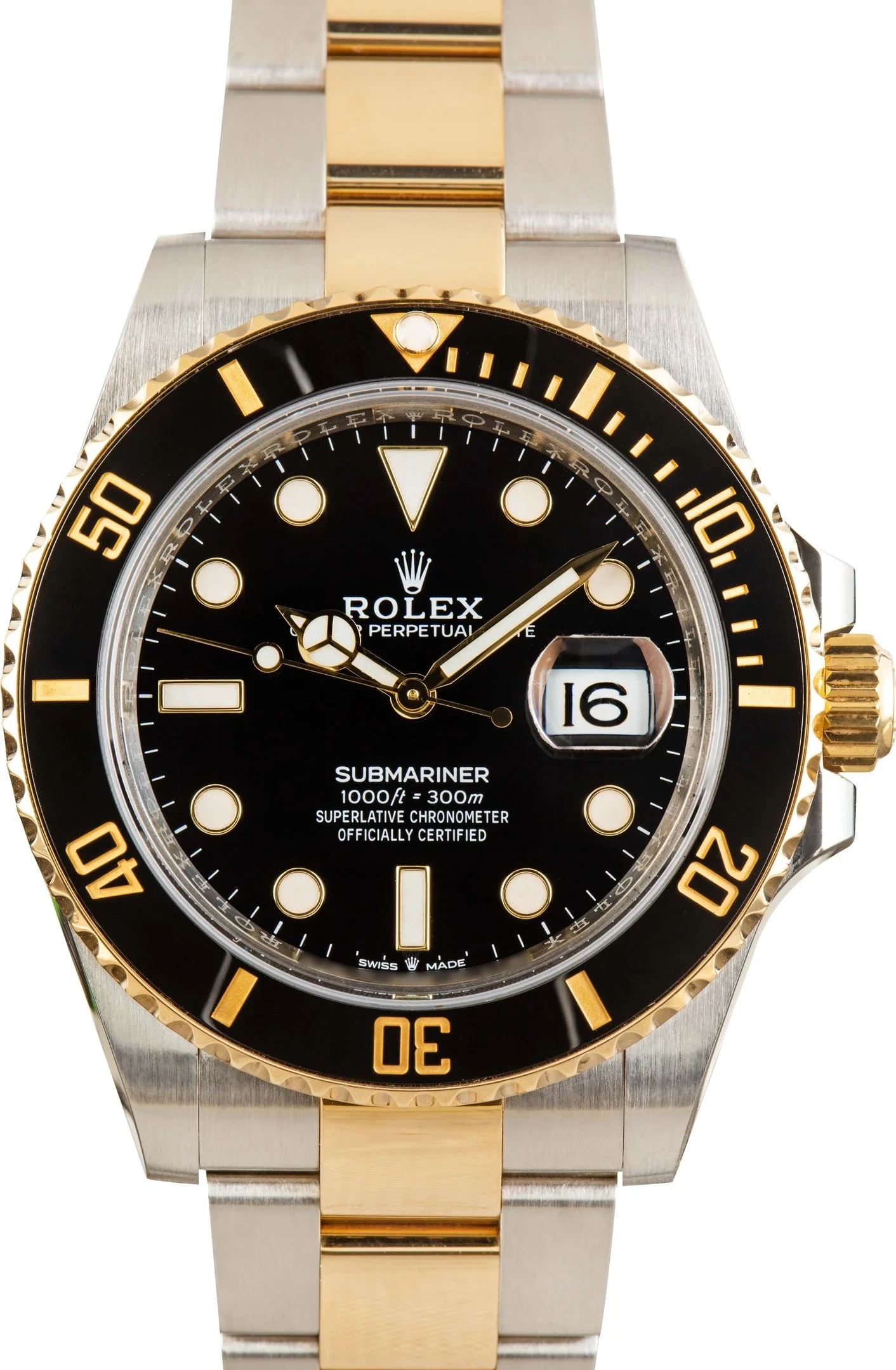 Why We Love This Watch This pre-owned Rolex Submariner ref. 126613LN (2021) blends modern engineering with elevated two-tone luxury. This 41mm case, crafted from resilient Oystersteel and 18k yellow gold, is paired with a unidirectional black Cerachrom bezel that frames a sleek black dial illuminated by Chromalight for flawless low-light readability. This iconic Oyster bracelet adds both comfort and refined presence on the wrist. Driven by Rolex’s self-winding Caliber 3235, this Submariner offers a robust 70-hour power reserve and precision performance. Water-resistant to 300 meters, this distinguished model captures the perfect harmony of luxury design and professional-grade diving capability. WATCH DETAILS CREDIT CARD PRICE $20,163.26 BRAND Rolex MODEL NAME Submariner MODEL NUMBER 126613 YEAR 2021 ITEM NUMBER 183319 CONDITION Excellent GENDER Mens BOX & PAPERS Box and Papers CASE MATERIAL Steel and Gold CRYSTAL Sapphire SIZE 41MM BEZEL Ceramic Timing CASEBACK Solid SERIAL 81G4DXXX DIAL Black w/ Luminous hour markers, Chromalight hands & Chromalight lume MOVEMENT CALIBRE 3235 TYPE Automatic BEZEL Unidirectional COMPLICATION Date BRACELET MATERIAL Two-Tone TYPE Oyster CLASP Glidelock