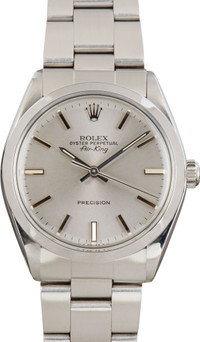 Why We Love This Watch This pre-owned Rolex Air-King ref. 5500 (1984) features a 34mm stainless steel case with a smooth bezel, showcasing a clean and timeless design. The silver dial with applied index markers offers excellent legibility and subtle vintage character. Powered by the reliable Caliber 1520 automatic movement, this Air-King reflects Rolex’s tradition of simplicity, precision, and enduring style. WATCH DETAILS CREDIT CARD PRICE $5,139.86 BRAND Rolex MODEL NAME Air-King MODEL NUMBER 5500 YEAR 1984 ITEM NUMBER 181756 CONDITION Vintage GENDER Mens Womens Unisex BOX & PAPERS Rolex Service Card Only CASE MATERIAL Stainless Steel CRYSTAL Acrylic SIZE 34MM BEZEL Stainless Steel Smooth CASEBACK Solid SERIAL 8103XXX DIAL Silver w/ Index hour markers, Tritium hands & Tritium lume MOVEMENT CALIBRE 1520 TYPE Automatic BEZEL Fixed COMPLICATION No Date BRACELET MATERIAL Stainless Steel TYPE Oyster CLASP Oysterclasp