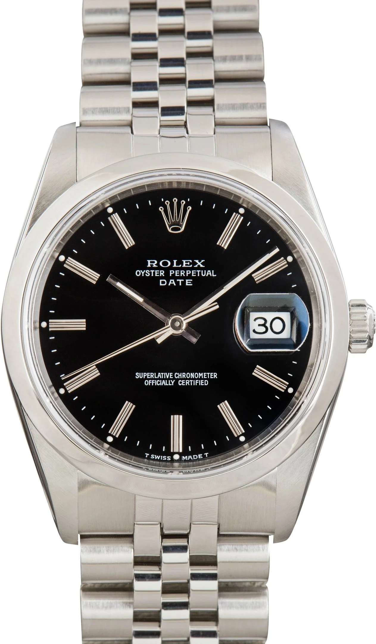 Why We Love This Watch This pre-owned Rolex Date ref. 15200 (1991) embodies classic Rolex styling with a sleek, understated edge. The black dial offers a timeless look, enhanced by the clean symmetry of the 34mm stainless steel Oyster case and smooth bezel. Powered by a self-winding movement and paired with a Jubilee bracelet, this versatile timepiece delivers the precision, reliability, and elegance that define the Rolex Date line. WATCH DETAILS CREDIT CARD PRICE $6,168.86 BRAND Rolex MODEL NAME Date MODEL NUMBER 15200 YEAR 1991 ITEM NUMBER 183775 CONDITION Excellent GENDER Mens Womens Unisex BOX & PAPERS Papers Only CASE MATERIAL Stainless Steel CRYSTAL Sapphire SIZE 34MM BEZEL Stainless Steel Smooth CASEBACK Solid SERIAL X568XXX DIAL Black w/ Index hour markers, Tritium hands & Tritium lume MOVEMENT CALIBRE 3135 TYPE Automatic BEZEL Fixed COMPLICATION Date BRACELET MATERIAL Stainless Steel TYPE Jubilee CLASP Oysterclasp