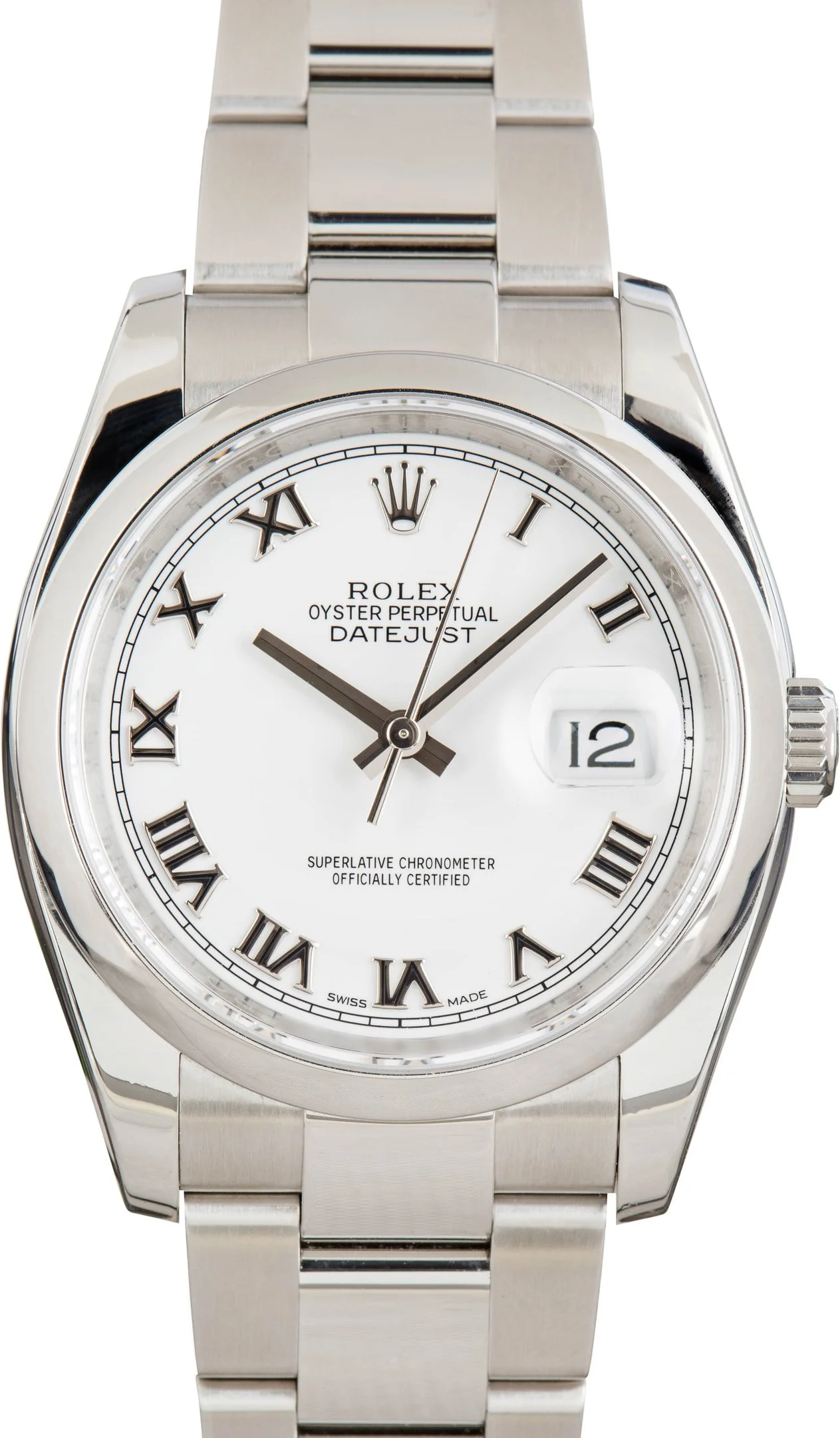 Why We Love This Watch This used Rolex Datejust ref. 116200 (2017) features a 36mm stainless steel case with a smooth bezel and a crisp white Roman numeral dial. Paired with an Oyster bracelet and powered by the Caliber 3135, it embodies timeless elegance with reliable performance. WATCH DETAILS CREDIT CARD PRICE $8,021.06 BRAND Rolex MODEL NAME Datejust 36 COLLECTION Datejust MODEL NUMBER 116200 YEAR 2017 ITEM NUMBER 183940 CONDITION Excellent GENDER Mens Unisex BOX & PAPERS Box and Papers CASE MATERIAL Stainless Steel CRYSTAL Sapphire SIZE 36MM BEZEL Stainless Steel Smooth CASEBACK Solid SERIAL 2S7SMXXX DIAL White w/ Roman hour markers, Non-Luminous hands & Nonluminous lume MOVEMENT CALIBRE 3135 TYPE Automatic BEZEL Fixed COMPLICATION Date BRACELET MATERIAL Stainless Steel TYPE Oyster CLASP Oysterclasp