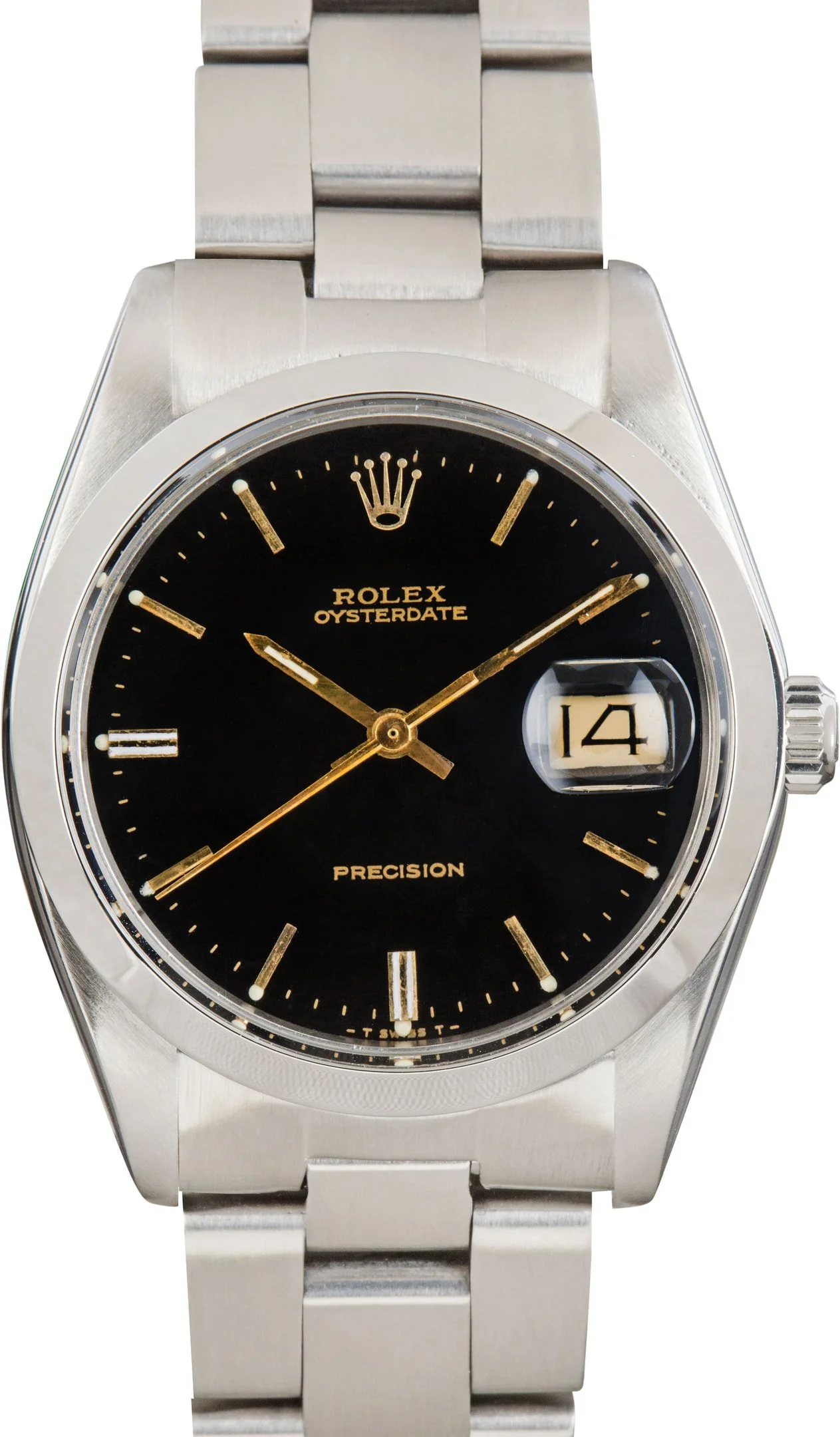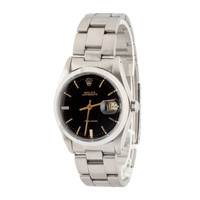 Why We Love This Watch This Rolex OysterDate ref. 6694 (1975) features a 34mm stainless steel case with a smooth bezel, exuding classic simplicity. Its black index dial enhances legibility, while the Oyster bracelet adds vintage charm. Powered by the manually wound Rolex Caliber 1225, this timepiece embodies timeless elegance and reliability. WATCH DETAILS BRAND Rolex MODEL NAME OysterDate MODEL NUMBER 6694 YEAR 1975 ITEM NUMBER 174279 CONDITION Excellent GENDER Mens Womens Unisex BOX & PAPERS No Box or Papers CASE MATERIAL Stainless Steel CRYSTAL Acrylic SIZE 34MM BEZEL Stainless Steel Smooth CASEBACK Solid SERIAL 3970XXX DIAL Black w/ Index hour markers, Tritium hands & Tritium lume MOVEMENT CALIBRE 1225 TYPE Manual BEZEL Fixed COMPLICATION Date BRACELET MATERIAL Stainless Steel TYPE Oyster CLASP Oysterclasp