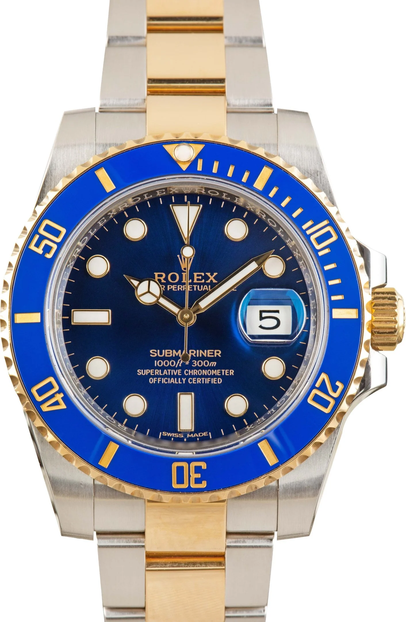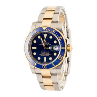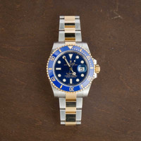 Why We Love This Watch This pre-owned Rolex Submariner ref. 116613 (2019) is the kind of watch that doesn’t just make a statement—it owns the room. With its 40mm stainless steel case offset by an 18k yellow gold bezel and rich blue Cerachrom insert, it delivers a striking balance of sport and sophistication. The matching blue Chromalight dial glows with legibility, while the two-tone Oyster bracelet brings unmistakable Rolex swagger. Under the hood, the trusted Caliber 3135 movement keeps things running with signature precision. Bold, iconic, and built to perform—this Submariner is luxury with an edge. WATCH DETAILS BRAND Rolex MODEL NAME Submariner MODEL NUMBER 116613 NICKNAME Bluesy YEAR 2019 ITEM NUMBER 182323 CONDITION Excellent GENDER Mens BOX & PAPERS Box and Papers CASE MATERIAL Steel and Gold CRYSTAL Sapphire SIZE 40MM BEZEL Ceramic Timing CASEBACK Solid SERIAL 6A46FXXX DIAL Blue w/ Luminous hour markers, Chromalight hands & Chromalight lume MOVEMENT CALIBRE 3135 TYPE Automatic BEZEL Unidirectional COMPLICATION Date BRACELET MATERIAL Two-Tone TYPE Oyster CLASP Glidelock
