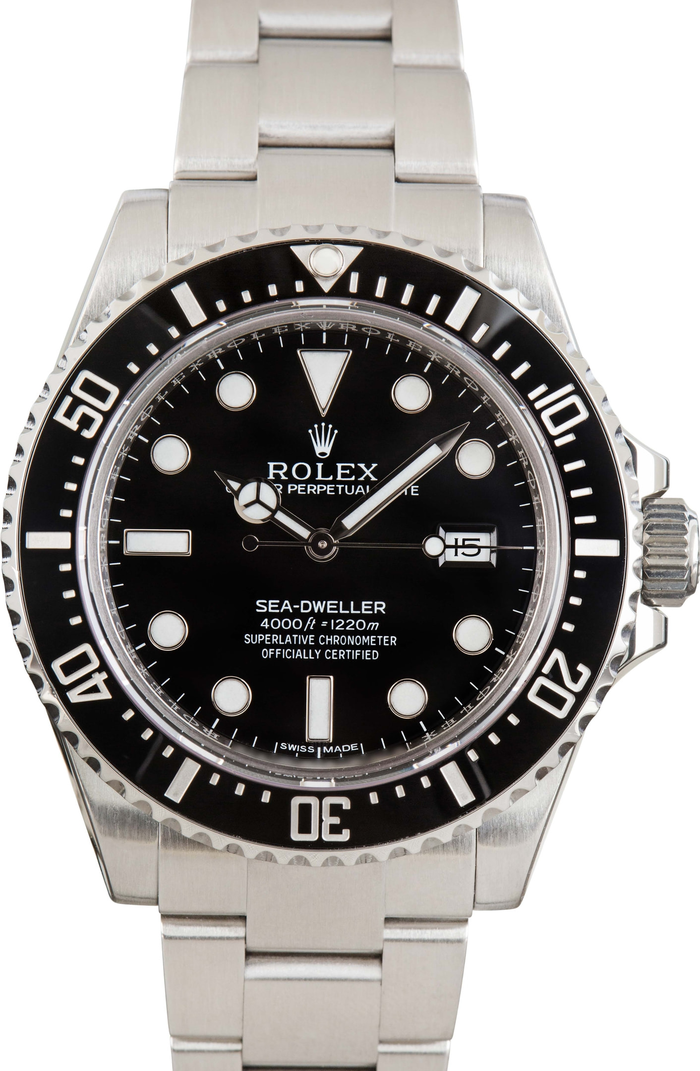 Why We Love This Watch Embodying both cutting-edge functionality and timeless style, this Pre-owned Rolex Sea-Dweller ref 116600 (2015) is renowned for its impressive depth rating. Its classic design with a modern touch makes it a coveted choice among divers and watch enthusiasts alike. WATCH DETAILS CREDIT CARD PRICE $14,709.56 BRAND Rolex MODEL NAME Sea-Dweller MODEL NUMBER 116600 YEAR 2015 ITEM NUMBER 175878 NAP CONDITION Excellent GENDER Mens BOX & PAPERS Box and Papers CASE MATERIAL Stainless Steel CRYSTAL Sapphire SIZE 40MM BEZEL Ceramic Timing SERIAL 6NK19XXX DIAL Black w/ Luminous hour markers, Chromalight hands & Chromalight lume MOVEMENT CALIBRE 3135 TYPE Automatic BEZEL Unidirectional COMPLICATION Date BRACELET MATERIAL Stainless Steel TYPE Oyster CLASP Glidelock