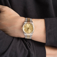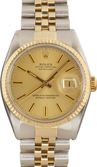Why We Love This Watch We adore this Rolex Datejust with its champagne index dial for its timeless sophistication. The warm, elegant hue combined with classic design details makes this watch a standout choice for refined style. WATCH DETAILS CREDIT CARD PRICE $6,168.86 BRAND Rolex MODEL NAME Datejust 36 MODEL NUMBER 16013 YEAR 1978 ITEM NUMBER 171419 CONDITION Excellent GENDER Unisex BOX & PAPERS No Box or Papers CASE MATERIAL Steel and Gold CRYSTAL Acrylic SIZE 36mm BEZEL 18k Yellow Gold Fluted SERIAL 5734XXX DIAL Champagne w/ Index hour markers, Tritium hands & Tritium lume MOVEMENT CALIBRE 3035 TYPE Automatic BEZEL Fixed COMPLICATION Date BRACELET MATERIAL Two-Tone TYPE Jubilee CLASP Oysterclasp