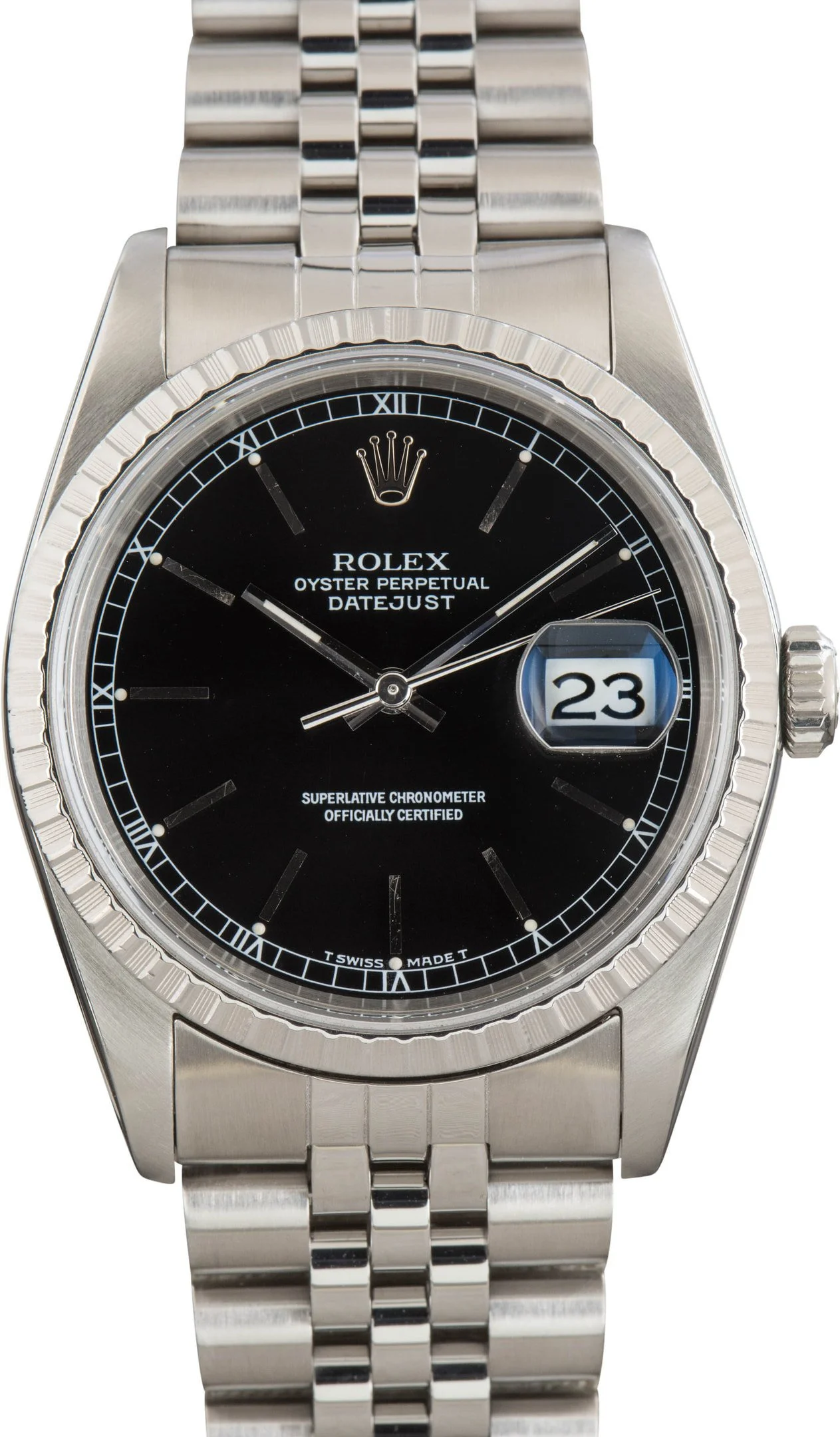 Rolex Datejust 36 Black Dial 16220 Steel Jubilee