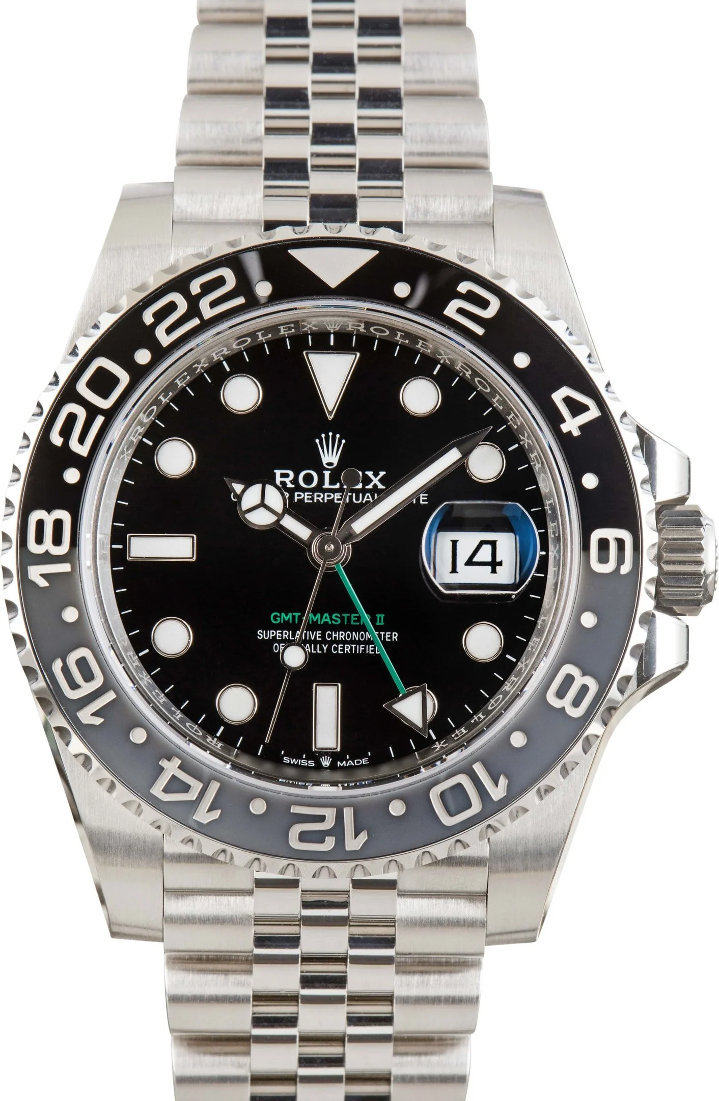Why We Love This Watch This pre-owned Rolex GMT-Master II ref. 126710GRNR (2025), affectionately known as the “Bruce Wayne,” showcases modern Rolex design and functionality. The 40mm Oystersteel case is paired with a Jubilee bracelet, balancing durability with comfort. Its black dial, framed by the distinctive grey and black Cerachrom bezel, offers exceptional legibility with luminous hands and hour markers, complemented by a date display at 3 o’clock. Powered by the self-winding Caliber 3285, this GMT-Master II provides precise dual-time functionality, a 70-hour power reserve, and Rolex’s renowned reliability. Bold, contemporary, and highly coveted, the “Bruce Wayne” is a standout example of the GMT-Master II legacy. WATCH DETAILS CREDIT CARD PRICE $23,661.86 BRAND Rolex MODEL NAME GMT-Master II COLLECTION GMT-Master MODEL NUMBER 126710 NICKNAME Bruce Wayne YEAR 2025 ITEM NUMBER 184287 CONDITION Excellent GENDER Mens BOX & PAPERS Box and Papers CASE MATERIAL Stainless Steel CRYSTAL Sapphire SIZE 40MM BEZEL Ceramic 24-hour CASEBACK Solid SERIAL V3041XXX DIAL Black w/ Luminous hour markers, Chromalight hands & Chromalight lume MOVEMENT CALIBRE 3285 TYPE Automatic BEZEL Bidirectional COMPLICATION Date BRACELET MATERIAL Stainless Steel TYPE Jubilee CLASP Oysterlock