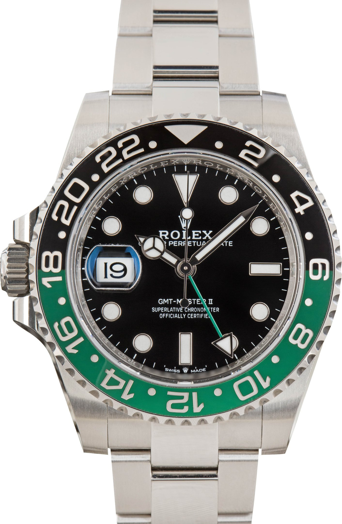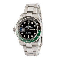 Why We Love This Watch This Rolex GMT Master II Ref. 126720 (2023) Left-Handed Sprite features a 41mm stainless steel case with a distinctive green and black "Sprite" bezel. Designed for left-handed wearers, the crown is positioned on the left side of the case for ease of use. Powered by the Caliber 3285 movement, it offers a 70-hour power reserve and dual time zone functionality. With its bold design and robust features, this model is a unique and practical choice for travelers and collectors. WATCH DETAILS CREDIT CARD PRICE $17,487.86 BRAND Rolex MODEL NAME GMT-Master II COLLECTION GMT-Master MODEL NUMBER 126720 NICKNAME Sprite YEAR 2023 ITEM NUMBER 181811 CONDITION Excellent GENDER Mens BOX & PAPERS Box and Papers CASE MATERIAL Stainless Steel CRYSTAL Sapphire SIZE 40MM BEZEL Ceramic 24-hour CASEBACK Solid SERIAL X4075XXX DIAL Black w/ Luminous hour markers, Chromalight hands & Chromalight lume MOVEMENT CALIBRE 3285 TYPE Automatic BEZEL Bidirectional COMPLICATION Date BRACELET MATERIAL Stainless Steel TYPE Oyster CLASP Oysterlock