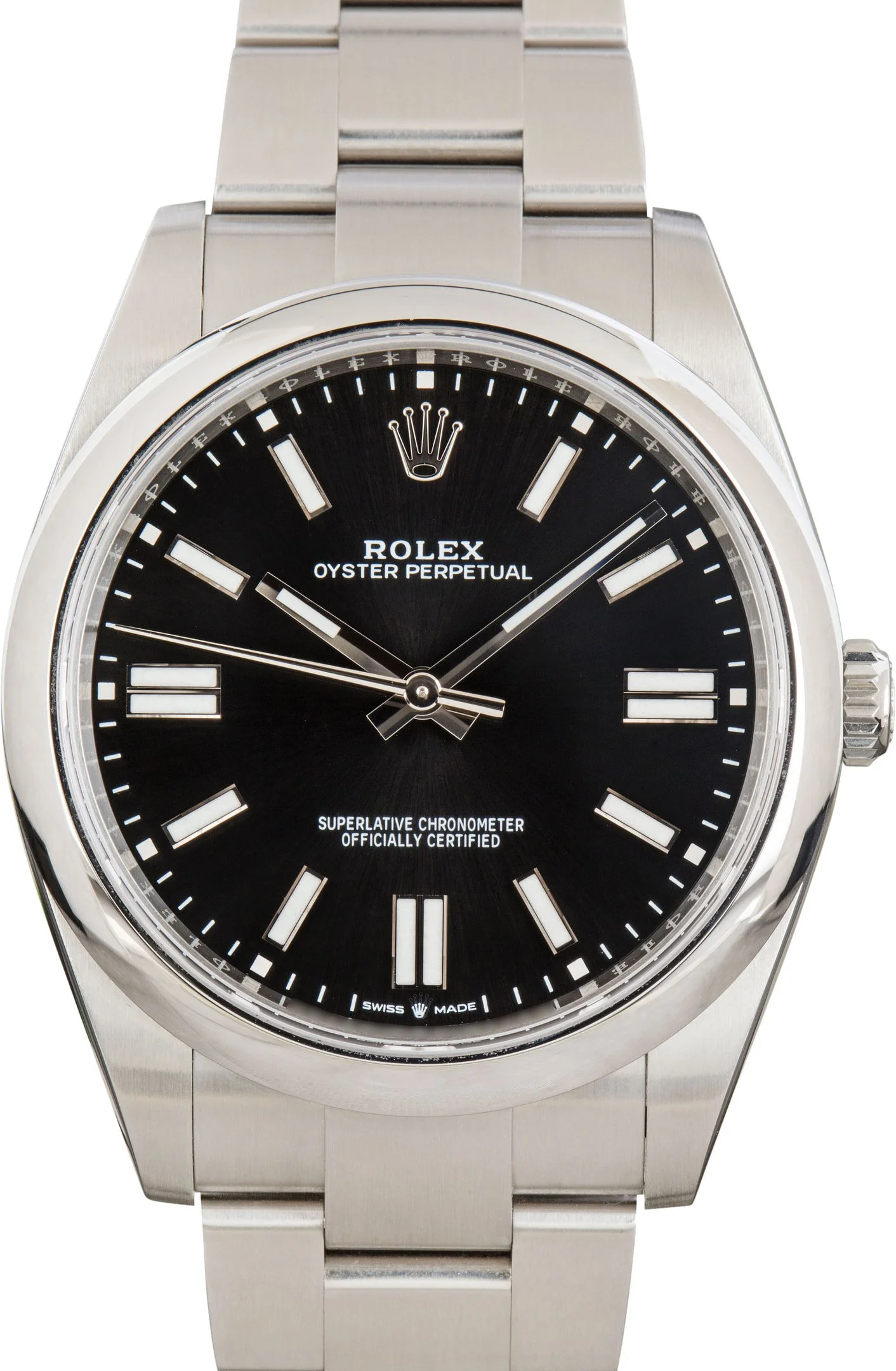 Why We Love This Watch This Pre-owned Rolex Oyster Perpetual 124300 (2022) with a black dial exudes modern elegance and versatility. Its clean lines and innovative movement make it a stylish yet timeless choice. WATCH DETAILS CREDIT CARD PRICE $10,284.86 BRAND Rolex MODEL NAME Oyster Perpetual 41 COLLECTION Oyster Perpetual MODEL NUMBER 124300 YEAR 2022 ITEM NUMBER 183224 CONDITION Excellent GENDER Mens BOX & PAPERS Box and Papers CASE MATERIAL Stainless Steel CRYSTAL Sapphire SIZE 41MM BEZEL Stainless Steel Smooth CASEBACK Solid SERIAL H9548XXX DIAL Black w/ Index hour markers, Chromalight hands & Chromalight lume MOVEMENT CALIBRE 3230 TYPE Automatic BEZEL Fixed COMPLICATION No Date BRACELET MATERIAL Stainless Steel TYPE Oyster CLASP Oysterclasp