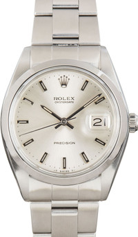 Why We Love This Watch Pre-owned Rolex OysterDate ref 6694 (1972) is a vintage classic that combines timeless style with everyday reliability. Featuring a 34mm stainless steel case with a smooth bezel and iconic Oyster foldover bracelet, this watch exudes understated elegance. The silver dial under an acrylic crystal offers a clean, classic look, while Rolex’s automatic movement ensures precise timekeeping—perfect for collectors or anyone seeking a refined vintage timepiece. WATCH DETAILS BRAND Rolex MODEL NAME OysterDate MODEL NUMBER 6694 YEAR 1972 ITEM NUMBER 180052 CONDITION Vintage GENDER Mens Womens Unisex BOX & PAPERS No Box or Papers CASE MATERIAL Stainless Steel CRYSTAL Acrylic SIZE 34MM BEZEL Stainless Steel Smooth CASEBACK Solid SERIAL 3062XXX DIAL Silver w/ Index hour markers, Tritium hands & Tritium lume MOVEMENT CALIBRE 1225 TYPE Manual BEZEL Fixed COMPLICATION Date BRACELET MATERIAL Stainless Steel TYPE Oyster Fold-Over CLASP Oysterclasp