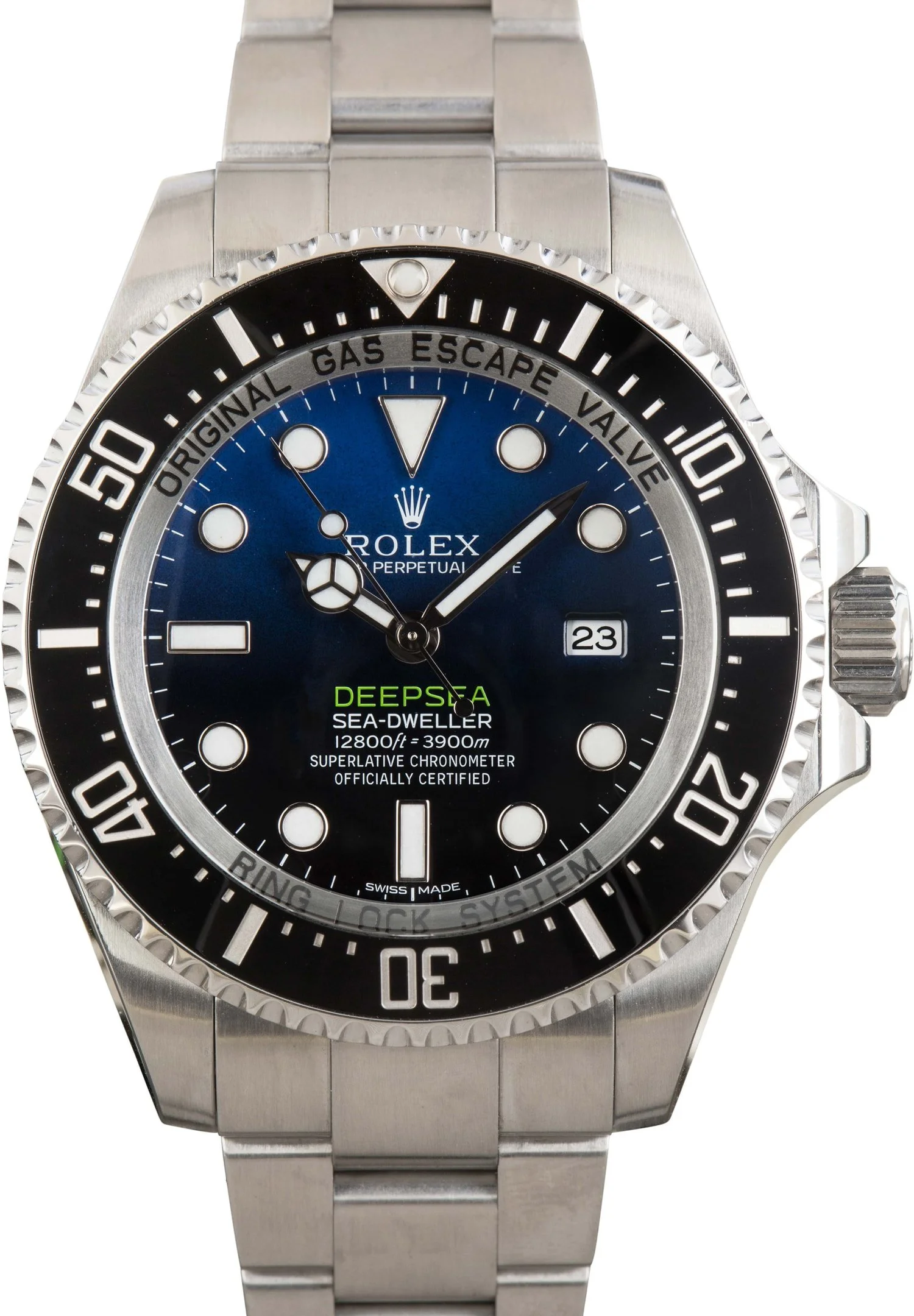 Why We Love This Watch This Rolex Sea-Dweller Deepsea ref. 116660 (2015) is a powerhouse of engineering and adventure. Its commanding 44mm stainless steel case and black ceramic timing bezel set the stage for the mesmerizing deep blue-to-black Chromalight dial, combining bold aesthetics with exceptional legibility. Driven by the Caliber 3135 and secured by a rugged Oyster bracelet, this watch delivers precision under pressure. Built to conquer depths of up to 12,800 feet, the Deepsea is not just a tool—it’s an invitation to explore extremes with style and unstoppable confidence. WATCH DETAILS BRAND Rolex MODEL NAME Sea-Dweller MODEL NUMBER 116660 NICKNAME James Cameron YEAR 2015 ITEM NUMBER 182734 CONDITION Excellent GENDER Mens BOX & PAPERS Papers Only CASE MATERIAL Stainless Steel CRYSTAL Sapphire SIZE 44MM BEZEL Ceramic Timing CASEBACK Solid SERIAL Q71F6XXX DIAL Black Blue w/ Luminous hour markers, Chromalight hands & Chromalight lume MOVEMENT CALIBRE 3135 TYPE Automatic BEZEL Unidirectional COMPLICATION Date BRACELET MATERIAL Stainless Steel TYPE Oyster CLASP Glidelock