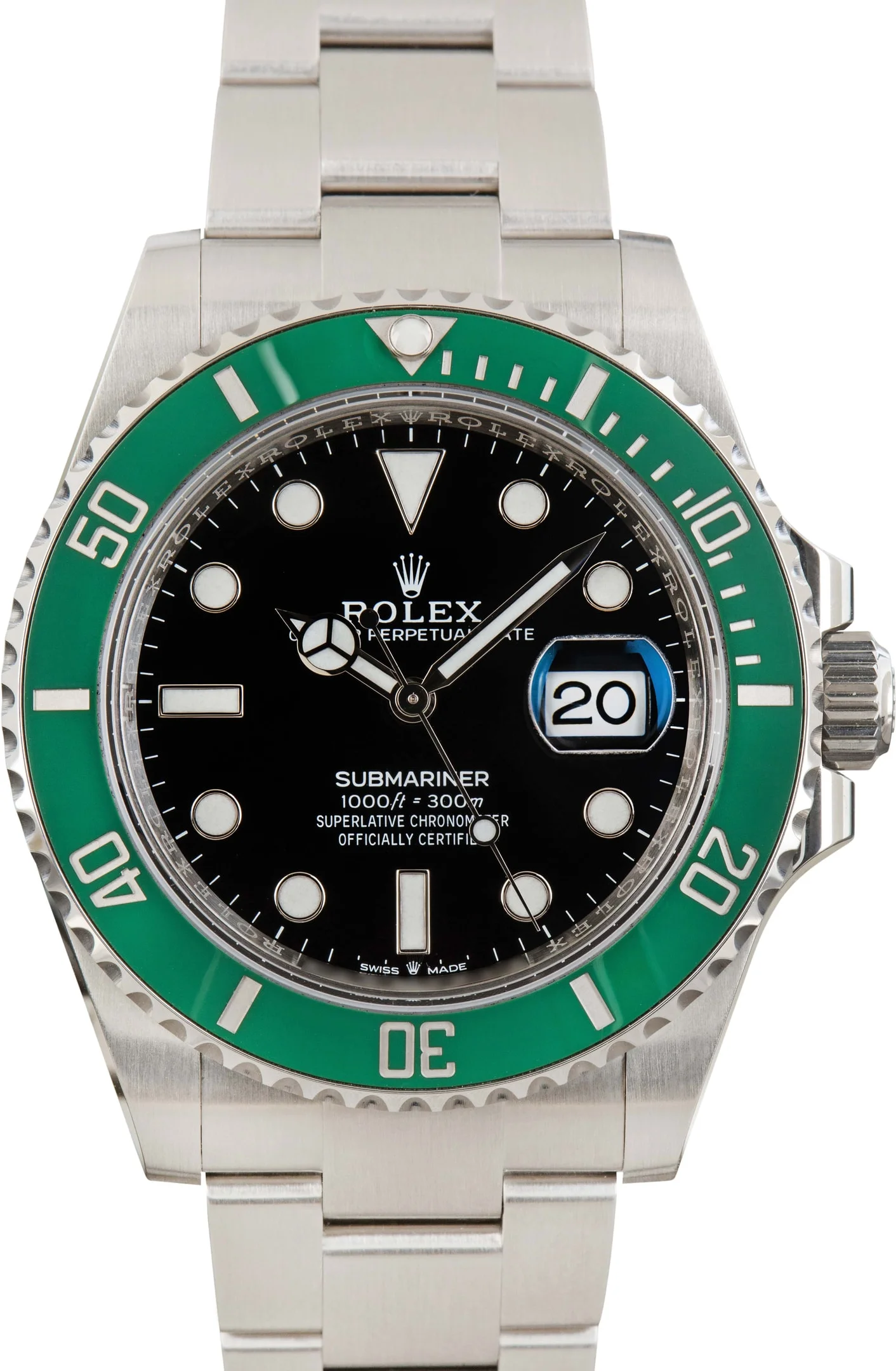 Why We Love This Watch Pre-owned Rolex Submariner ref 126610LV (2023) embodies the perfect balance of innovation and heritage. This modern dive watch features a 41mm stainless steel case, a striking black dial, and the signature green Cerachrom bezel—earning it the nickname “Starbucks.” Powered by the robust Caliber 3235 automatic movement, it offers superior precision, a 70-hour power reserve, and water resistance up to 300 meters. A bold and collectible evolution of an icon built for performance and style. WATCH DETAILS CREDIT CARD PRICE $16,355.96 BRAND Rolex MODEL NAME Submariner MODEL NUMBER 126610 NICKNAME Starbucks YEAR 2023 ITEM NUMBER 182724 CONDITION Excellent GENDER Mens BOX & PAPERS Box and Papers CASE MATERIAL Stainless Steel CRYSTAL Sapphire SIZE 41MM BEZEL Ceramic Timing CASEBACK Solid SERIAL 915L3XXX DIAL Black w/ Luminous hour markers, Chromalight hands & Chromalight lume MOVEMENT CALIBRE 3235 TYPE Automatic BEZEL Unidirectional COMPLICATION Date BRACELET MATERIAL Stainless Steel TYPE Oyster CLASP Glidelock