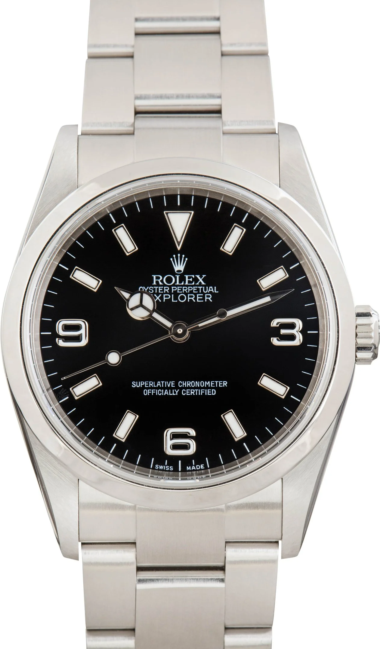 Why We Love This Watch This pre-owned Rolex Explorer ref 114270 (2003–2005) captures the essence of Rolex’s adventurous spirit in a clean, timeless design. The 36mm stainless steel case is paired with a smooth bezel and a black dial featuring bold white hour markers for optimal legibility. Powered by a reliable self-winding movement, it offers exceptional precision and durability. Completed with the classic Oyster bracelet, this Explorer delivers a refined balance of rugged capability and understated sophistication. WATCH DETAILS CREDIT CARD PRICE $6,786.26 BRAND Rolex MODEL NAME Explorer 36 COLLECTION Explorer MODEL NUMBER 114270 YEAR 2005 ITEM NUMBER 183845 CONDITION Excellent GENDER Mens Unisex BOX & PAPERS No Box or Papers CASE MATERIAL Stainless Steel CRYSTAL Sapphire SIZE 36MM BEZEL Stainless Steel Smooth CASEBACK Solid SERIAL F252XXX DIAL Black w/ Arabic hour markers, Superluminova hands & Superluminova lume MOVEMENT CALIBRE 3130 TYPE Automatic BEZEL Fixed COMPLICATION No Date BRACELET MATERIAL Stainless Steel TYPE Oyster CLASP Fliplock