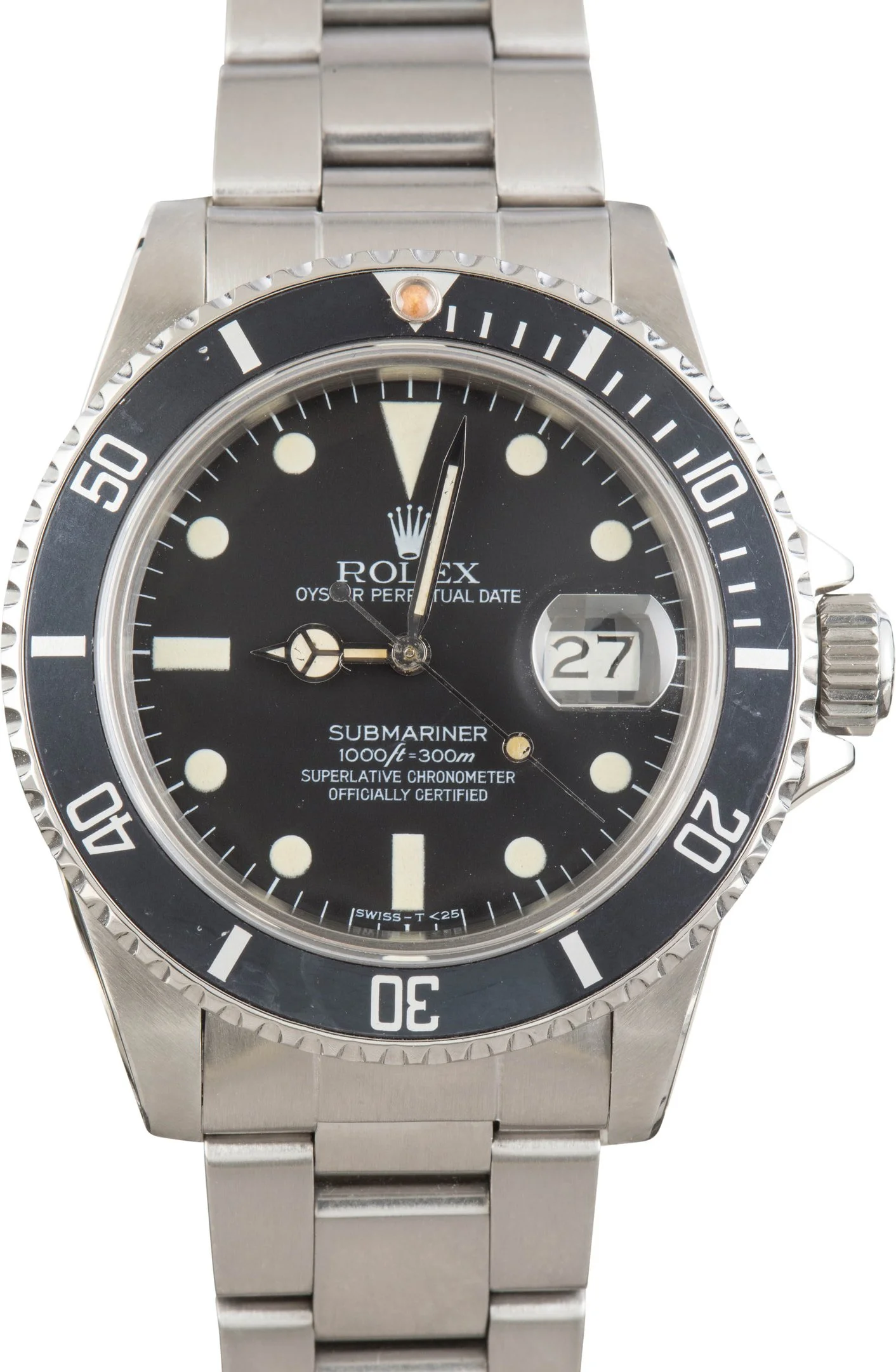Why We Love This Watch This vintage Rolex Submariner ref. 16800 is a key transitional Sub, bridging vintage and modern. Housed in a 40mm steel case, it’s among the first Submariners to feature a sapphire crystal and 300m water resistance, powered by the Cal. 3035 with quickset date. Retaining the classic black dial and bezel with period-correct details, the 16800 is prized for its robustness, usability, and historical significance within the Submariner lineage. WATCH DETAILS CREDIT CARD PRICE $10,902.26 BRAND Rolex MODEL NAME Submariner MODEL NUMBER 16800 YEAR Circa 1984 ITEM NUMBER 184382 CONDITION Vintage GENDER Mens BOX & PAPERS Box Only CASE MATERIAL Stainless Steel CRYSTAL Sapphire SIZE 40MM BEZEL Aluminum Timing CASEBACK Solid SERIAL 8293XXX DIAL Black w/ Tritium hour markers, Tritium hands & Tritium lume MOVEMENT CALIBRE 3035 TYPE Automatic BEZEL Unidirectional COMPLICATION Date BRACELET MATERIAL Stainless Steel TYPE Oyster CLASP Oysterlock
