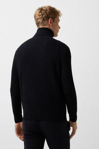 With a luxurious twist and pure comfort, the Balvin troyer made of pure cashmere with a zip stand-up collar and B leather drawstring. The monochrome ribbed texture adds sophisticated accents, complemented by an appliqued B-signe at the hem. Style number 254-8855-9764-464 Details - Cashmere troyer in a regular fit - Stand-up collar - Long sleeves - Attached cuffs - B-zip fastener with leather strap on the collar - Appliqued B-signe at hem height - Clean hem finish Material & care Material Shell 1 1. Layer: 100% Cashmere Material description Pure cashmere Material hints Contains non-textile parts of animal origin Care hand-wash do not bleach do not tumble dry handwarm ironing gentle dry-cleaning no wet-cleaning Use wool detergent. Do not use fabric softener