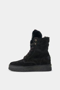 The Calgary lace-up boots are made from suede with a warming inlay made from pure lambskin - complemented by the rubberized outsole with fold-out spikes for more grip. The quilted shaft and signature accents create a modern look. The classic lacing and side zipper round off the items harmoniously. Style number 254-6434-Z033-001 Details - Suede boots with lambskin details - Closed with classic lacing B-zipper on the side - Rounded toe cap - Stitched upper Shoe tongue with B-Signe BOGNER embossed metal eyelets Rubber section with embossed logo on the heel Tonal stitching - Inlay and removable lambskin insole - Bootleg height: 16 cm - Bootleg width: 10 cm - TR outsole with OCsystem® spikes to fold out - Plateau height (front): 2,5 cm - Heel height: 2,5 cm - Logo shoe bag included - Made in Italy Material & care Material Shell 1 1. Layer: % Leather Shell 2 1. Layer: % Lamb Lining 1. Layer: % Lamb Insole 1. Layer: % Lamb Sole 1. Layer: % Rubber Material description Made from suede with lambskin details Lining and insole made from pure lambskin TR-Rubber outsole with OCsystem® Tipper