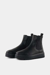 Made from grained calfskin, the Antwerp Chelsea boots are a stylish all-rounder for different looks, complemented by elasticated knitted sections on the sides. The lambskin lining provides warmth, while the profiled EVA rubber sole offers the necessary grip. A tonal logo flag rounds off the items with an accent. Style number 254-6434-Z015-001 Details - Chelsea boots made from grained calfskin with elasticated knitted sections on the side - Rounded toe cap - BOGNER flag on the side Grosgrain ribbon loop with logo print on the back - Lambskin inlay Removable lambskin insole - Bootleg height: 14 cm - Bootleg width: 10 cm - Profiled EVA rubber outsole - Plateau height (front): 3 cm - Heel height: 4 cm - Logo shoe bag included - Made in Italy Material & care Material Shell 1 1. Layer: % Calfskin Shell 2 1. Layer: % Textile Lining 1. Layer: % Lamb Insole 1. Layer: % Lamb Sole 1. Layer: % Rubber Material description Grained calfskin with knitted sections Lining and insole made of pure lambskin Profiled EVA rubber sole