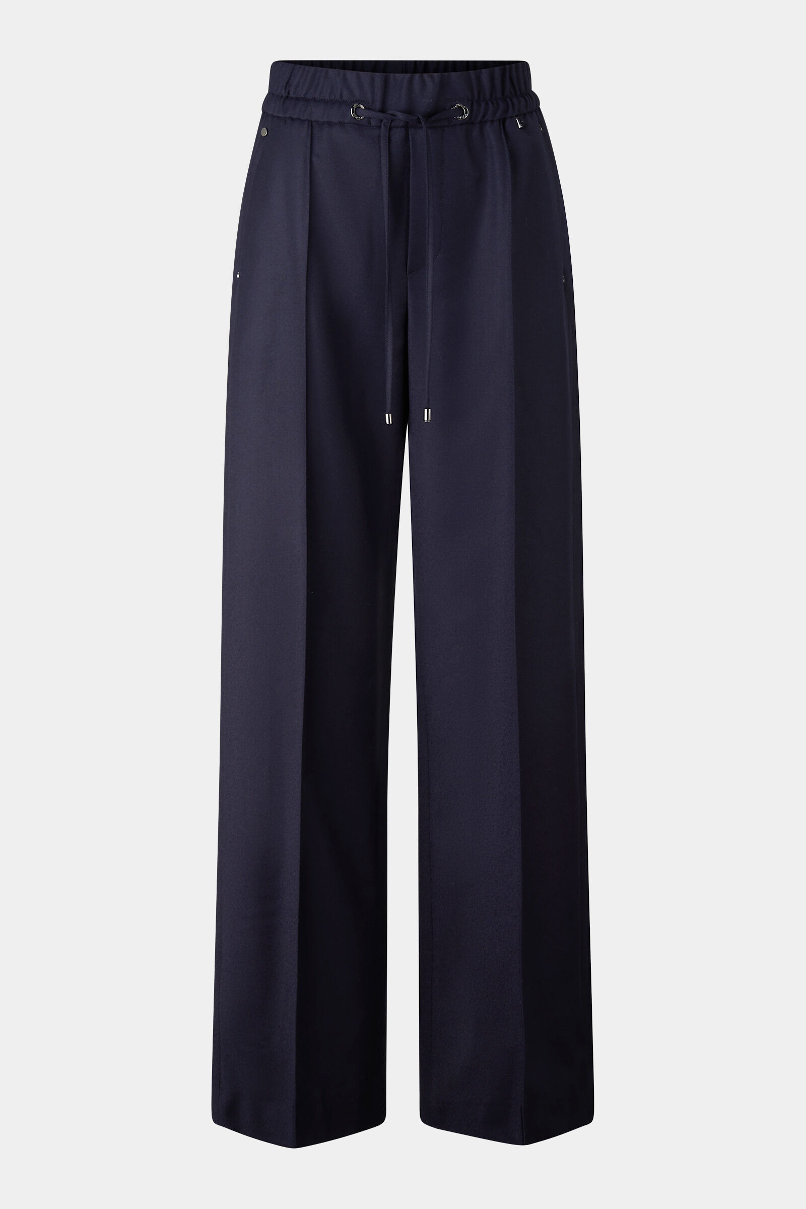 The Ella flannel trousers are characterized by stretchy virgin wool and wide trouser legs, comfortably complemented by the elasticated waistband with drawstring. Pintucks, classic creases and metallic label details add accents. Side slit pockets stylishly round off the piece. This style goes perfectly with the Emily jacket, Ariela blouse and Eloise vest. Style number 254-1650-3304-464 Details - Loose fit flannel pants - With wide legs - Trouser leg cuffs with turn-ups - Elastic waistband with drawstring, BOGNER-embossed eyelets and band with logo-embossed metal ends - Two side slit pockets with logo-embossed rivets - Tucks at the front, classic pressed pleats at the back B pendant at the waistband Indicated zipper - Foot width: 54 cm Material & care Material Shell 1 1. Layer: 99% Virgin wool, 1% Elastane Material description Two-way stretch in fine flannel quality made from virgin wool Care do not wash do not bleach do not tumble dry handwarm ironing gentle dry-cleaning no wet-cleaning