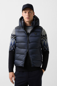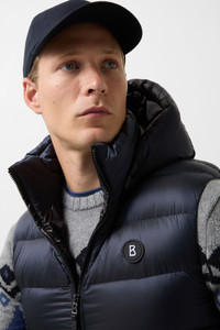 The Holger quilted down vest is an impressive update to the look, with padding made from pure duck down and a detachable hood with drawstring. A two-way zip and side pockets complete the design, while elasticated logo inserts at the armholes and hem ensure a comfortable finish. This piece pairs perfectly with the Dwight deerstalker hat. Style number 254-3838-6856-413 Details - Quilted down vest in a regular fit - Padded stand-up collar - Detachable hood with drawstring - Armholes with elastic BOGNER insert at the back - Closed with two-way zip with B pendant - Two side zip pockets Two inside pockets - Logo embossed stopper and metal eyelets as well as W-stitching on the back of the hood Logo rubber patch at chest height Logo ribbon loop on the inside - With water-repellent finish - Warming padding made from pure duck down - Hem with elasticated logo insert on the back - Back length: 65 cm Material & care Material Shell 1 1. Layer: 55% Polyamide, 45% Polyamide (Recycled) Lining 1 1. Layer: 55% Polyamide, 45% Polyamide (Recycled) Filling 1 1. Layer: 100% Duck down Material description Water-repellent nylon with nylon lining and warming padding made of pure duck down Sterilization number UT 70027 (CN) Material hints Contains non-textile parts of animal origin Sterilisation number: This article is a product with a filling of animal origin. It has been properly sterilised by the manufacturer so that no harmful microorganisms can be transported in the filling. With respect to our environment, this product was produced without the intentional addition of per- and polyfluoroalkyl substances (PFAS). It offers water-repellent properties that increasingly avoid the use of harmful, persistent chemicals. To maintain the high functionality and durability of the garment, we recommend diligent product care in accordance with the instructions on the care label. Reactivation of the existing impregnation by washing with subsequent moderate heat treatment (dryer - impregnation programme), see care label or use a professional cleaning service. After repeated washi Care mild fine wash do not bleach mild drying process do not iron gentle dry-cleaning wet-cleaning Wash separately on a gentle cycle at 30°C, use only down or liquid mild detergent, do not use fabric softener