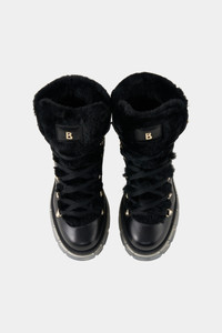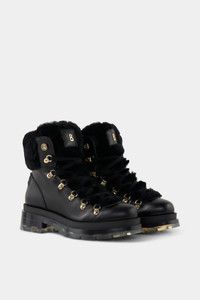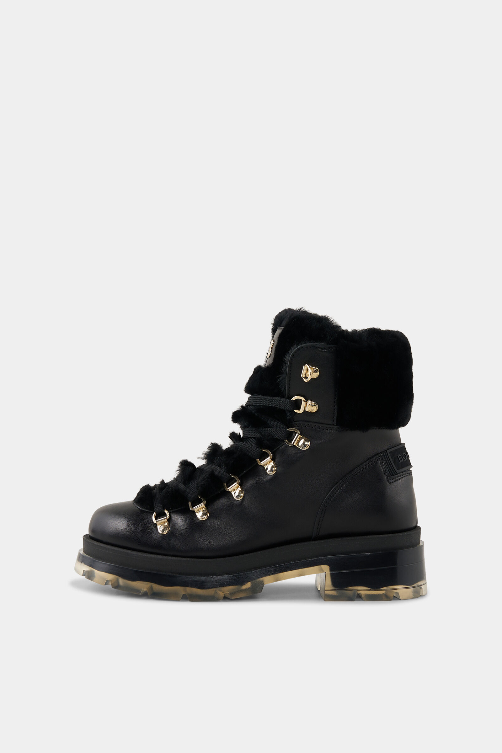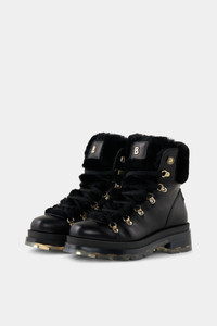 The alpine eyelet lacing in a gold look, iconic label accents and the transparent sole section give the Swansea mid boots their sophisticated look. The lambskin trim adds a luxurious twist - rounded off with soft nappa leather. Style number 254-6434-Z177-001 Details - Boots made from pure nappa leather with shearling - Sevenfold eyelet lacing - Mid-high shaft and rounded toe cap - B-Rubber patch on the tongue Rubber bar on the heel - Lambskin interior Removable insole - Bootleg height: 14 cm - Bootleg width: 9 cm - Rubber sole with transparent finish - Plateau height (front): 2,5 cm - Heel height: 5 cm - Logo shoe bag included Made in Italy Material & care Material Shell 1 1. Layer: % Calfskin Lining 1. Layer: % Lamb Insole 1. Layer: % Lamb Sole 1. Layer: % Rubber Material description Design made from pure nappa leather with shearling Extra soft lambskin inlay Rubber profile sole with transparent finish