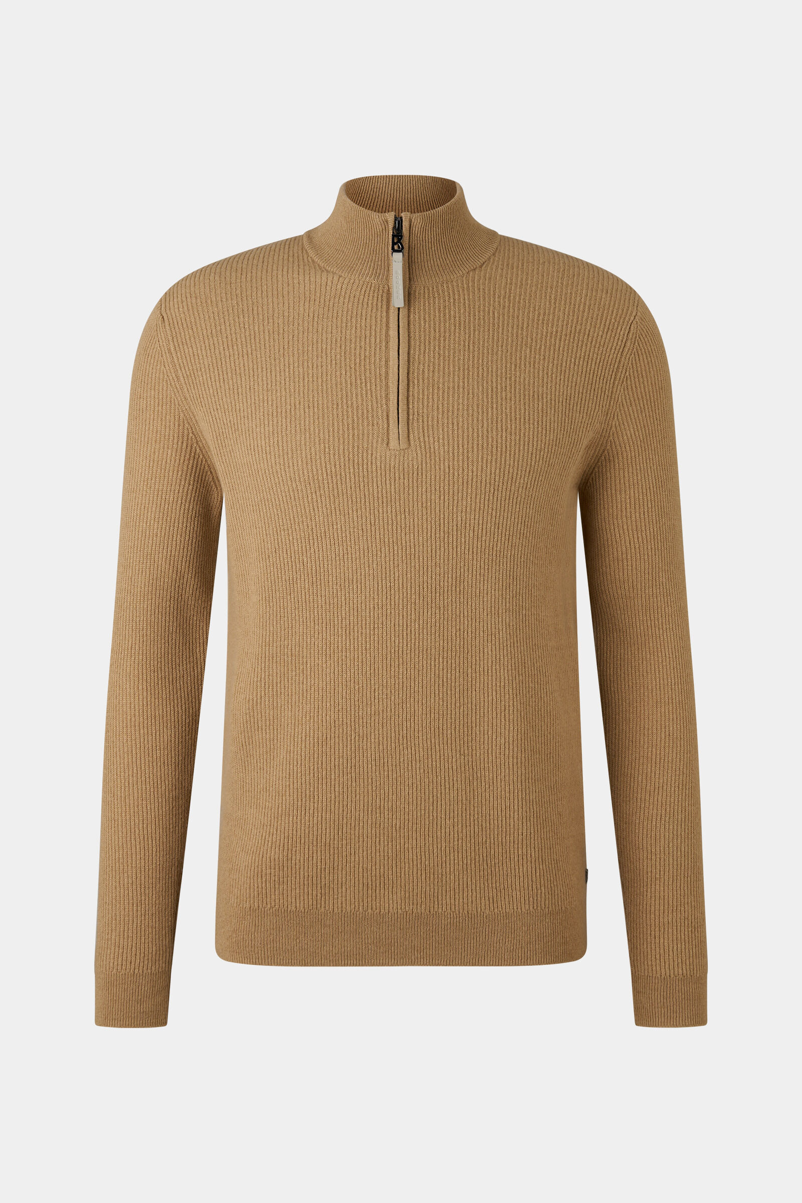 Fine ribbed knit gives the Derek troyer a modern look, stylishly complemented by the B-zipper with leather strap on the stand-up collar and the label's signature B-signe at hem height. The blend of virgin wool and cashmere provides a luxurious twist and pure comfort. Style number 254-8875-2761-805 Details - Knitted troyer in a regular fit - Stand-up collar - Long sleeves - Attached cuffs - B-zip fastener with leather strap on the collar - Appliqued B-signe at hem height - Clean hem finish Material & care Material Shell 1 1. Layer: 70% Virgin wool, 30% Cashmere Material description Luxurious finish in virgin wool with cashmere Material hints Contains non-textile parts of animal origin Care hand-wash do not bleach do not tumble dry handwarm ironing do not dry-clean no wet-cleaning Use wool detergent. Do not use fabric softener