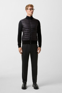 The Zisco knit jacket impresses with its hybrid design made from finely knitted wool with a quilted nylon front - complemented by heat-insulating padding made from pure duck down. The stand-up collar, ribbed cuffs and underlaid two-way zip emphasize the comfortable design, while side pockets and fine logo details add a harmonious finish. Style number 254-8886-9426-026 Details - Hybrid knit jacket in a regular fit With quilted nylon front section - Ribbed stand-up collar - Long sleeves - Ribbed cuffs - Underlaid two-way zip with B pendant - Two side zip pockets - Logo rubber patch on the sleeve - Warming duck down padding - Hem with ribbed cuffs - Back length: 67 cm Material & care Material Shell 1 1. Layer: 100% Wool Shell 2 1. Layer: 55% Polyamide, 45% Polyamide (Recycled) Lining 1 1. Layer: 55% Polyamide, 45% Polyamide (Recycled) Filling 1 1. Layer: 100% Duck down Material description Finely knitted quality made of pure wool with quilted nylon front, nylon lining and warming duck down padding Sterilization number UT 70027 (CN) Material hints Contains non-textile parts of animal origin Sterilisation number: This article is a product with a filling of animal origin. It has been properly sterilised by the manufacturer so that no harmful microorganisms can be transported in the filling. Care do not wash do not bleach do not tumble dry handwarm ironing gentle dry-cleaning no wet-cleaning