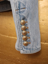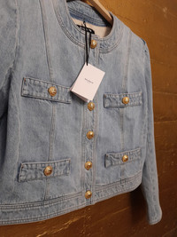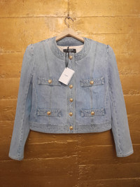 Balmain Cotton Denim Spencer Jacket Brand new with tag Size 44 IT or 40 FR Item Code: 76I-L5Z088 Front button closure Button cuffs Lined Retail Price 1341€ (sold out) Measures: Length 57cm Shoulder 46cm Chest 54cm Hem 53cm