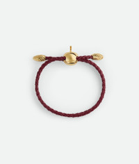 Product Details - 18k gold-finish sterling silver and braided leather bracelet - Custom sliding system and button closure - Buckle external size: 20 x 15 mm | 0.8 x 0.6" - Leather cord thickness: 3 mm | 0.1" - Length S: 16.5 cm | 6.5" - Length M: 18 cm | 7.1" - Length L: 19.5 cm | 7.7" - Color: Dark Apple Candy - Made in: Italy - Product code: 838282VAHUA6244