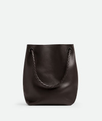 Product Details - Silky calfskin bucket bag with sliding shoulder strap - Intrecciato leather internal pocket - Adjustable and detachable cross-body strap - Lining: Calf leather - Color: Fondant - Hardware: Brass finish - Made in: Italy - Product code: 844169V4O922190 Material - Material: Calfskin Size & Fit - Height: 34 cm | 13.4" - Width: 24 cm | 9.4" - Depth: 12 cm | 4.7 - Strap drop: 41 cm | 16.1"
