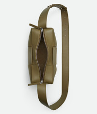 Camera bag in Intreccio leather with adjustable strap. Product Details - Intreccio leather camera bag - One interior zipped pocket - Zip closure - Material: calfskin - Lining: Unlined - Color: Algae - Hardware: Silver finish - Height: 18 cm | 7.1” - Width: 28 cm | 11” - Depth: 9 cm | 3.5” - Strap drop: 50 cm | 19.7” - Made in: Italy - Product code: 731165V56A12934