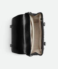 Backpack in Intrecciato leather. Product Details - Intrecciato leather backpack - Two exterior flap pockets - Single interior laptop compartment and two open pockets - Flap closure - Material: Lambskin - Lining: Canvas - Color: Black - Hardware: Silver finish - Height: 39 cm | 15.4" - Width: 31 cm | 12.2" - Depth: 14 cm | 5.5" - Handle drop: 6 cm | 0.2” - Made in: Italy - Product code: 805971V2HL18803 Size & Fit - Fits a 16" laptop, A4 documents, and a tablet