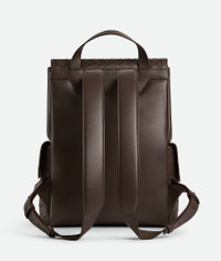 Backpack in Intrecciato leather, featuring external pockets and flap closure. Product Details - Intrecciato leather backpack - Two exterior flap pockets - Single interior laptop compartment and two open pockets - Flap closure - Lining: Canvas - Color: Old wood - Hardware: Silver finish - Made in: Italy - Product code: 805971V2HL12116 Material - Material: Calfskin Size & Fit - Height: 39 cm (15.4") - Width: 31 cm (12.2") - Depth: 14 cm (5.5") - Handle drop: 6 cm (2.4") - Fits a 16" laptop, A4 documents, and a tablet
