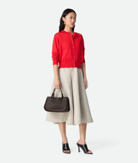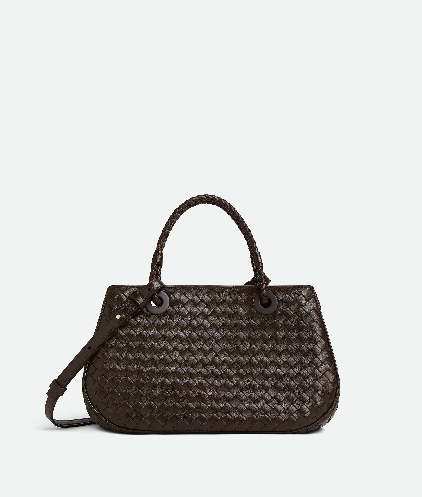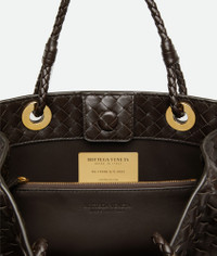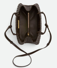 Product Details - Intrecciato leather basket bag with signature coaxial handles - Inspired by an archival bag from Spring Summer 02 - Engraved muse brass metal plate featuring the bag's inaugural year and a pre-assigned edition number - Adjustable and detachable leather strap - Two compartments with zipped pocket - Magnetic tab closure - Lining: Lambskin - Color: Fondant - Hardware: Brass finish - Height: 18.5 cm | 7.3" - Width: 31 cm | 12.2" - Depth: 16 cm | 6.3" - Handle drop: 12 cm | 4.7" - Strap drop: 55 cm | 21.7" - Made in: Italy - Product code: 836261V08Z02272