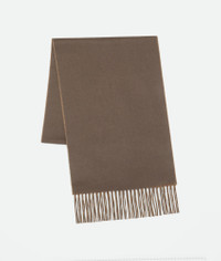Scarf in soft bi-colour cashmere with Intrecciato leather patch. Product Details - Bi-color cashmere scarf - Intrecciato leather patch - Color: Black/Beige - Made in: Italy - Product code: 837676V5TX01033 Material - Material: 100% cashmere Size & Fit - Length: 180 cm | 70.9" - Width: 36 cm | 14.2"