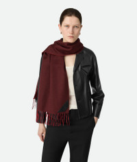 Scarf in soft bi-colour cashmere with Intrecciato leather patch. Product Details - Bi-color cashmere scarf - Leather Intrecciato patch - Color: Bordeaux/Red - Made in: Italy - Product code: 845562V5TX06174 Material - Material: 100% Cashmere Size & Fit - Length: 180 cm | 70.9" - Width: 36 cm | 14.2"