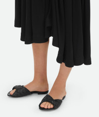Flat mule with a folded detail in Intrecciato leather. Product Details - Intrecciato leather flat mule - Folded detail - Material: lambskin - Unlined - Color: Black - Rubber-injected leather outsole - Made in: Italy - Product code: 806918V2ED01000