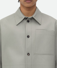 Shirt in bonded nappa leather with 3D detailing. Product Details - Bonded nappa leather shirt - 3D motif detail - Button closure - Relaxed fit - Material: 100% lambskin - Color: Seal - Made in: Italy - Product code: 802581V4LS01206 Size & Fit - Model is 188 cm|6'2" and is wearing a Bottega Veneta size 46