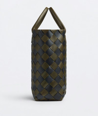 Product Details - Large intrecciato leather tote bag - Single detachable interior zipped pocket with exterior card slots - Material: lambskin - Lining: Lambskin bonded Intrecciato - Color: Mustard/Black - Hardware: Gold finish - Height: 62 cm | 13.9" - Width: 41 cm | 13.3" - Depth: 17 cm | 6.2" - Handle Drop: 19 cm | 8.6" - Made in: Italy - Product code: 569041VMAA02248