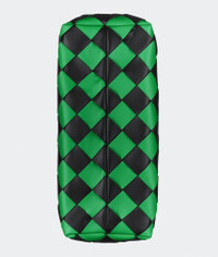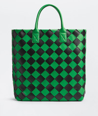 Product Details - Large intrecciato leather tote bag - Single detachable interior zipped pocket with exterior card slots - Material: lambskin - Lining: Lambskin bonded Intrecciato - Color: Grass/Black - Hardware: Gold finish - Height: 62 cm | 13.9" - Width: 41 cm | 13.3" - Depth: 17 cm | 6.2" - Handle Drop: 19 cm | 8.6" - Made in: Italy - Product code: 569041VMAA03715