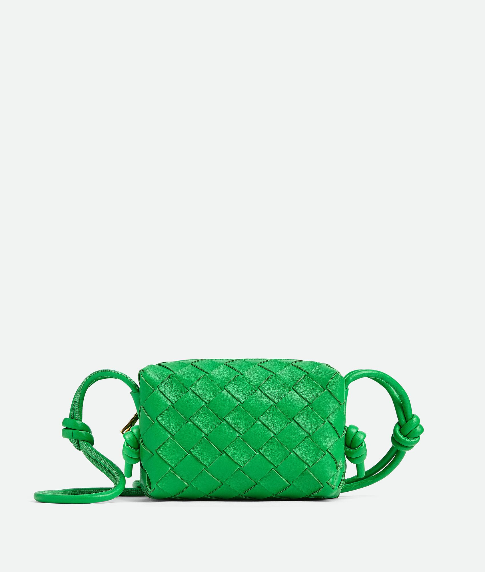 • Micro intrecciato leather cross-body bag • Single compartment • Zipper closure Material: 100% Lambskin • Lining: Calfskin • Color: Parakeet • Hardware: Gold finish • Height: 8.5 cm | 3.3" • Width: 13 cm | 5.1" • Depth: 6 cm | 2.4" • Strap drop: 55 cm | 21.7" Made in: Italy