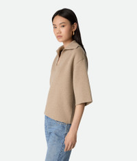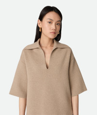 Short sleeved polo in midweight compact cashmere. Product Details - Midweight compact cashmere short-sleeved polo - Regular fit - Color: Beige - Made in: Italy - Product code: 835398V33N09713 Material - Material: 100% Cashmere Size & Fit - Model is 179 cm | 5'10" and is wearing a Bottega Veneta size S