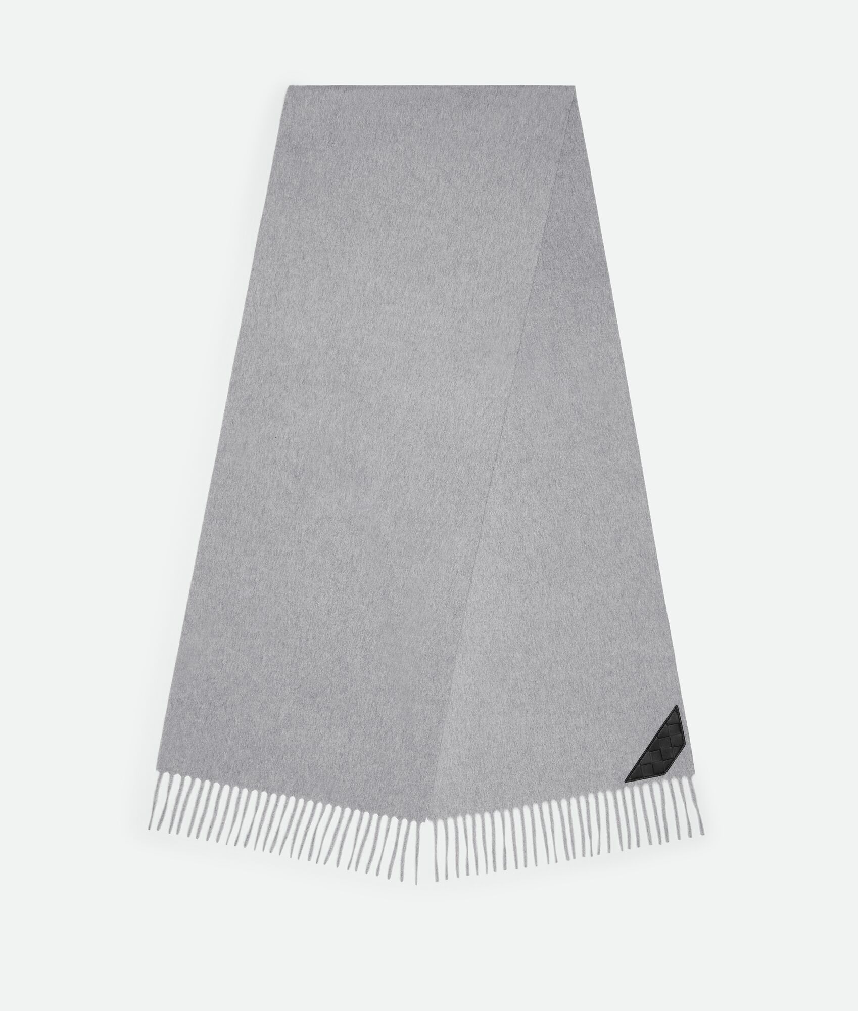 Scarf in soft cashmere with Intrecciato leather patch. Product Details - Cashmere scarf - Intrecciato leather patch - Color: Gray Melange - Made in: Italy - Product code: 845572V3VU08519 Material - Material: 100% Cashmere Size & Fit - Length: 180 cm | 70.9" - Width: 36 cm | 14.2"