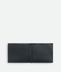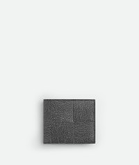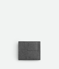 Bi-fold wallet in Intreccio nabuk leather with printed denim effect. Product Details - Intreccio nubuck leather wallet with printed denim effect - Six card slots, one note compartment, two additional pockets - Lining: Calf leather - Color: Mid Gray/Ardoise - Height: 8.5 cm | 3.3" - Width: 10 cm | 3.9" - Depth: 1 cm | 0.4" - Made in: Italy - Product code: 743004V5UF11214