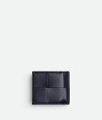 Zipped bi-fold wallet in Intreccio calf leather with contrasted interior. Product Details - Intreccio calfskin leather wallet with contrasted interior - Six card slots, one note compartment, two additional pockets, one zipped coin purse - Press stud closure - Lining: Calfskin - Color: Nocturnal / Blue Royal - Hardware: Silver finish - Made in: Italy - Product code: 819207VBWD64173 Material - Material: Calfskin Size & Fit - Height: 9 cm (3.5") - Width: 10.5 cm (4.1") - Depth: 2 cm (0.8")