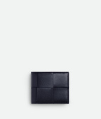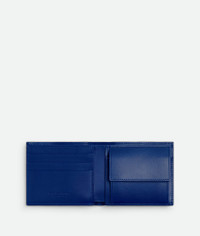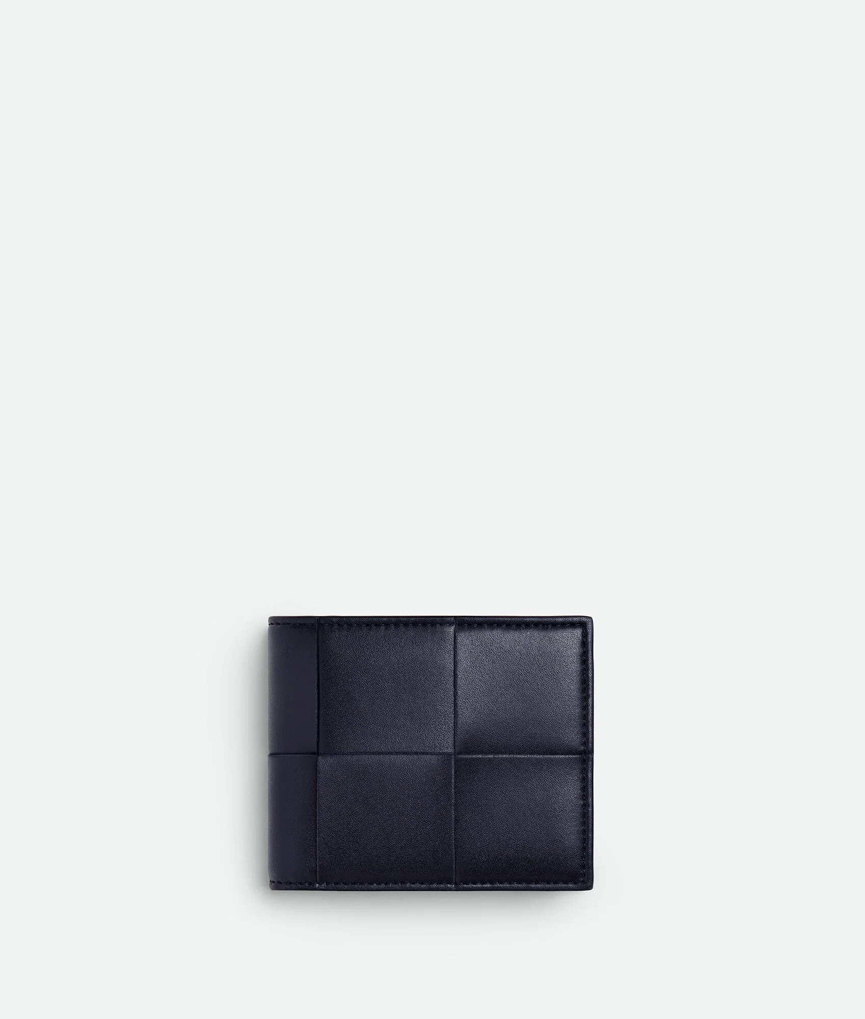 Product Details - Intreccio calfskin leather wallet with contrasted interior - Three card slots, one note compartment, two additional pockets, one coin purse - Lining: Calfskin - Color: Nocturnal / Blue Royal - Hardware: Silver finish - Made in: Italy - Product code: 749455VBWD54143 Material - Material: Calfskin Size & Fit - Height: 8.5 cm (3.3") - Width: 10 cm (3.9") -Depth: 1 cm (0.4")