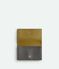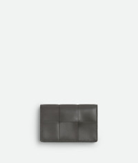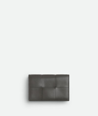 Intreccio calfskin leather card case with contrasted interior. Product Details - One compartment, one card slot - Press stud closure - Material: calfskin - Lining: Calfskin - Color: Lapilli/Limonite - Hardware: Silver finish - Height: 7.5 cm | 2.9” - Width: 12.2 cm | 4.8” - Depth: 2.5 cm | 1” - Made in: Italy - Product code: 814653VBWD61355