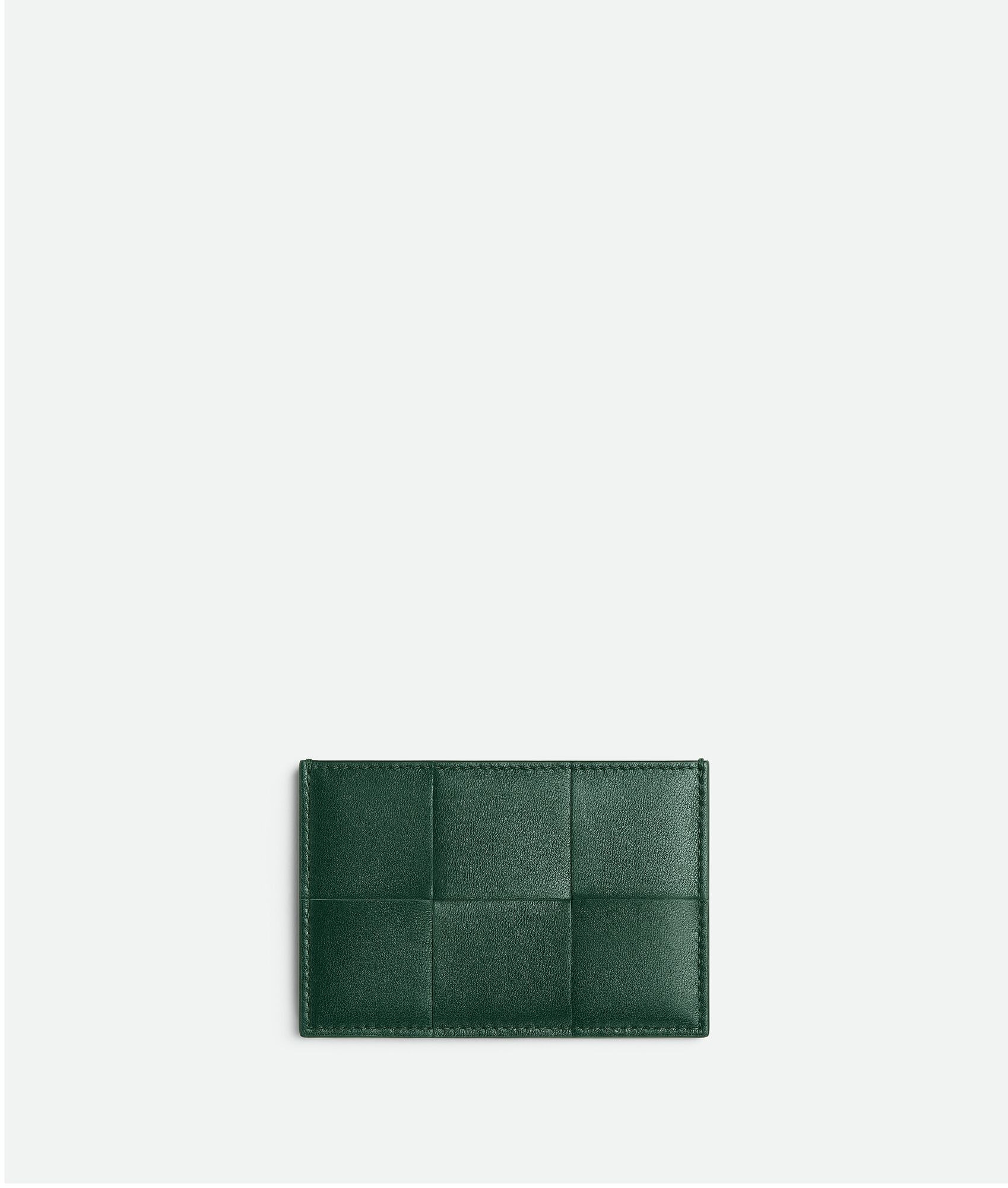 Intreccio nappa card case. Product Details - Three card slots, one central pocket - Material: lambskin, calfskin - Lining: Calfskin - Color: Emerald Green - Hardware: Gold finish - Height: 7.6 cm | 3" - Width: 11.4 cm | 4.5" - Depth: 0.5 cm | 0.2" - Made in: Italy - Product code: 742693VCQC43049