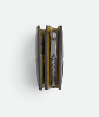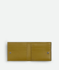 Intreccio calfskin leather wallet with contrasted interior. Product Details - Six card slots, one note compartment, two additional pockets, one zipped coin purse - Press stud closure - Material: calfskin - Lining: Calfskin - Color: Lapilli/Limonite - Hardware: Silver finish - Height: 9.5 cm | 3.7” - Width: 10 cm | 3.9” - Depth: 2 cm | 0.8” - Made in: Italy - Product code: 819207VBWD61355