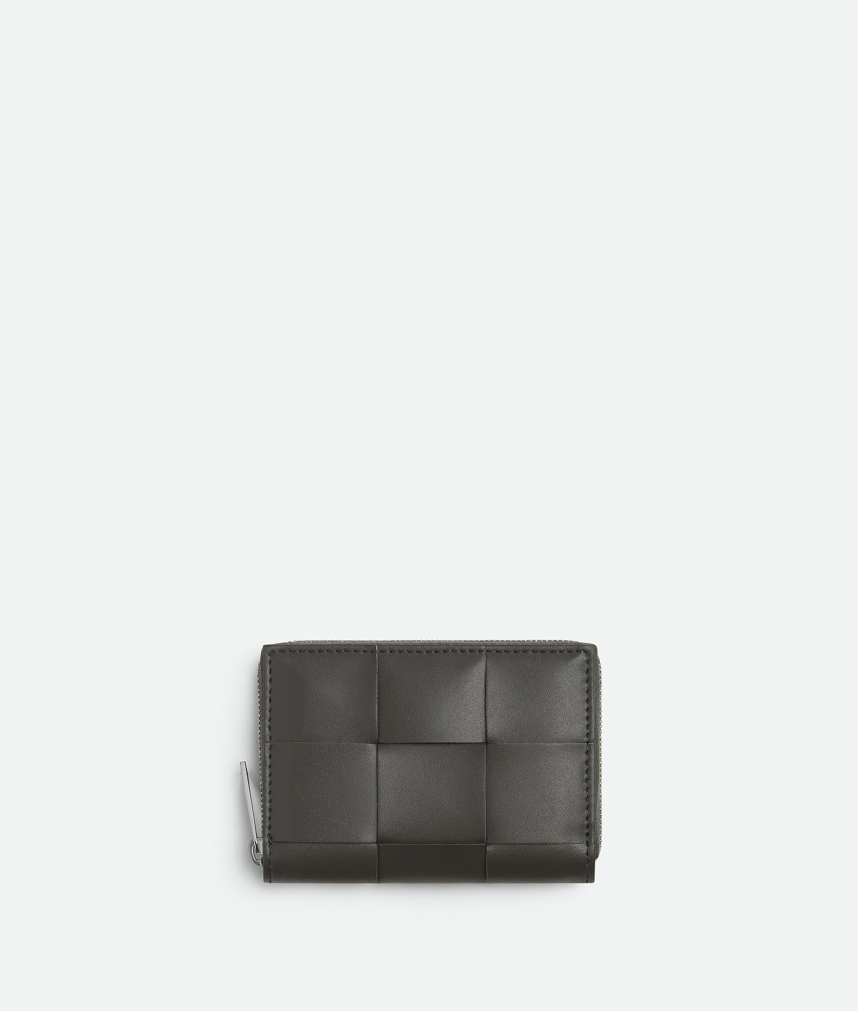 Intreccio calfskin leather coin purse with contrasted interior. Product Details - One card slot, two additional compartments - Zipper closure - Material: calfskin - Lining: Calfskin - Color: Lapilli/Limonite - Hardware: Silver finish - Height: 7 cm | 2.7” - Width: 10.5 cm | 4.1” - Depth: 1.5 cm | 0.6” - Made in: Italy - Product code: 790558VBWD51348