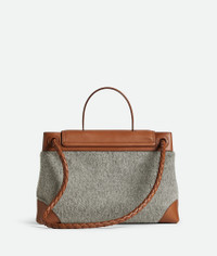 Product Details - Felt and calfskin leather top handle bag with two-way flap - Sliding shoulder-carry strap - Adjustable and detachable cross-body strap - Compartmented interior with one zipped pocket - Hook closure - Lining: Lambskin - Color: Gray/Light Wood - Hardware: Brass finish - Made in: Italy - Product code: 844051V5XK11625 Material - Material: Polyester, virgin wool, calfskin Size & Fit - Height: 26 cm | 10.2" - Width: 34 cm | 13.4" - Depth: 15 cm | 5.9" - Handle drop: 11 cm | 4.3" - Strap drop: 55 cm | 21.7"